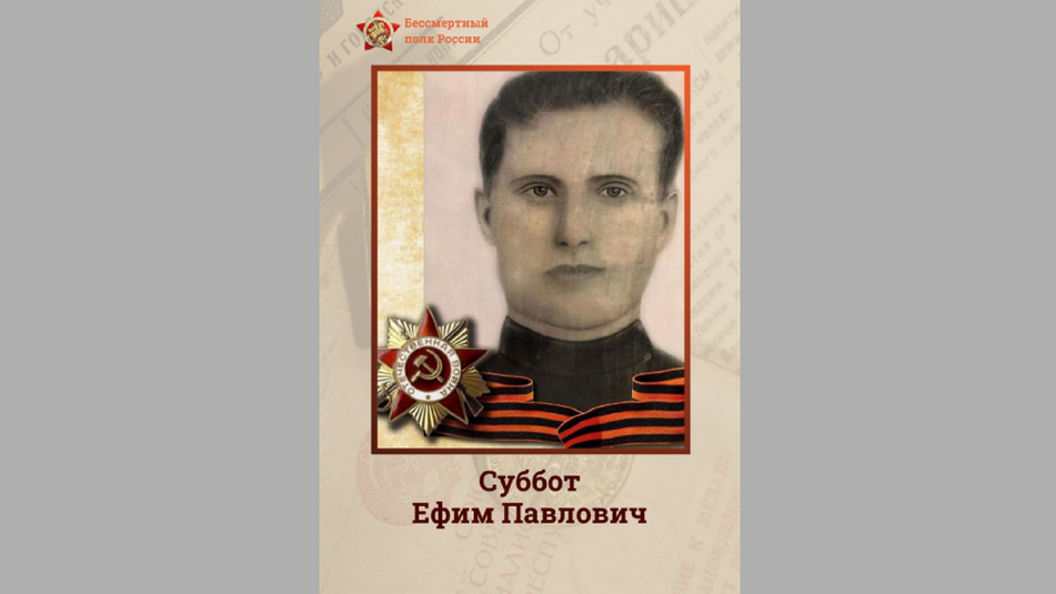Председатель Брянской областной Думы Валентин Суббот принял участие в онлайн-акции «Бессмертный полк»? Рассказывает РИА Стрела. Он рассказал о своем дедушке Ефиме Субботе, который входил в стрелковую дивизию Западного фронта.