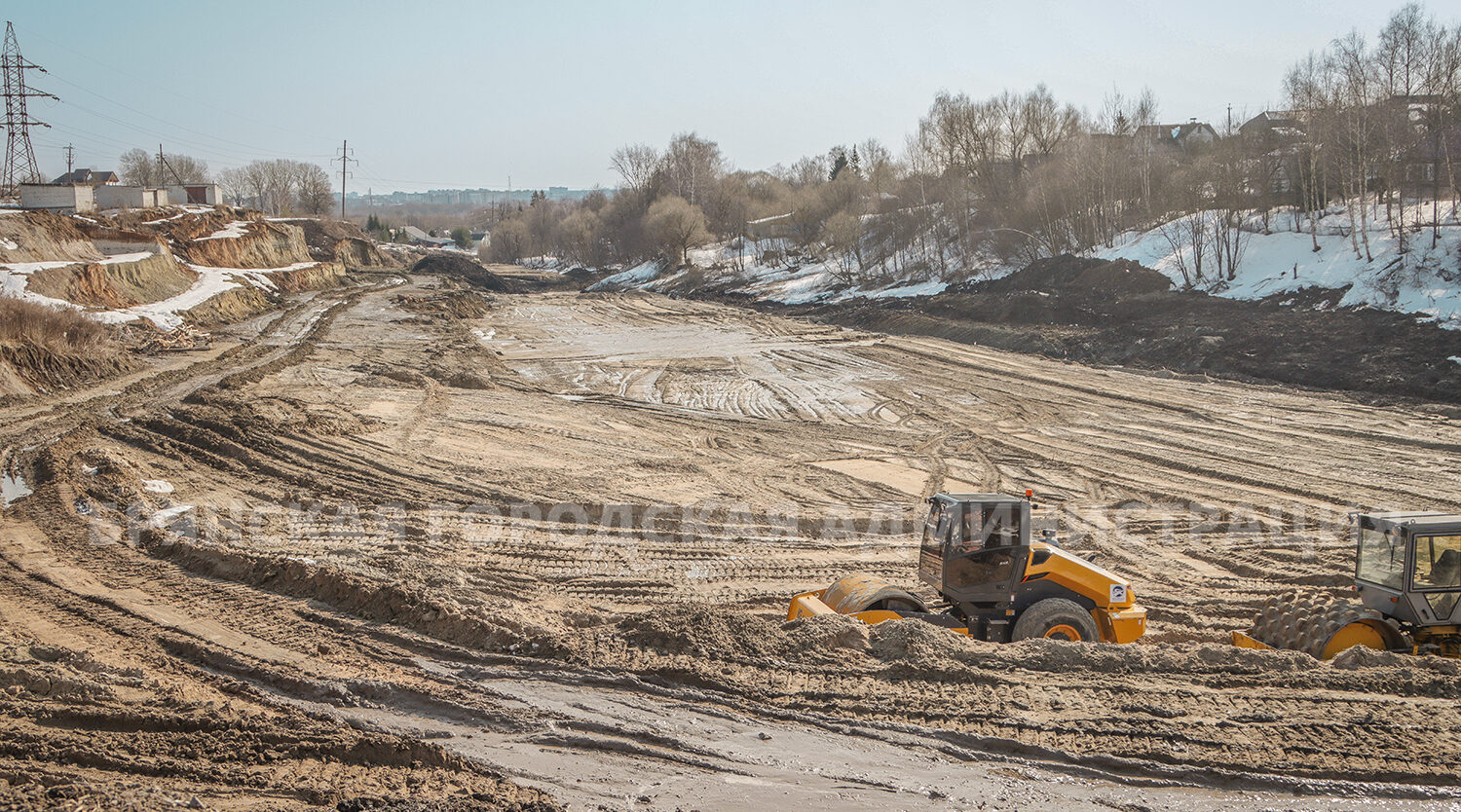 В основание будущей дороги-дублера укладывают геотекстиль