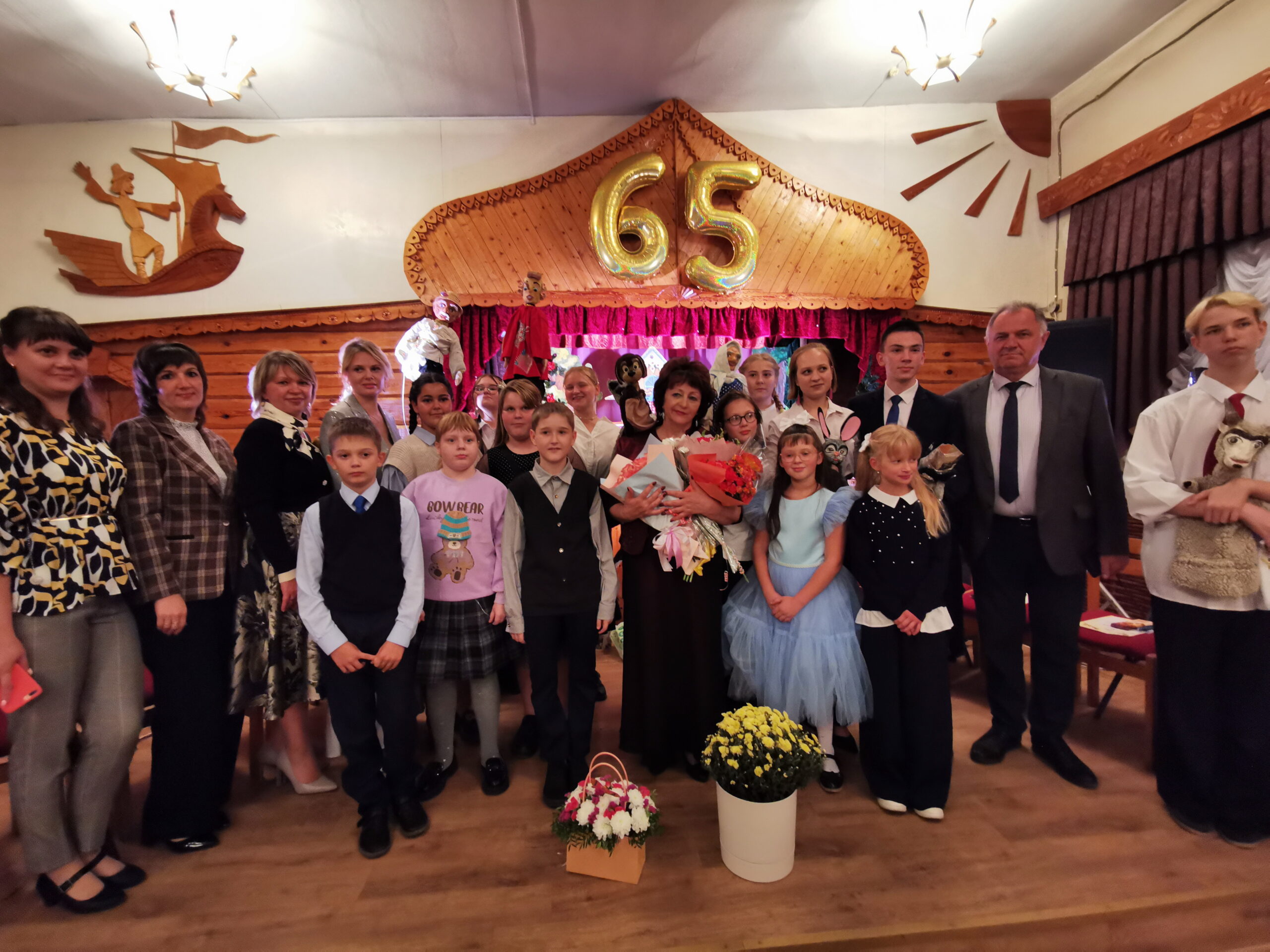 Поздравляли юбиляров представители Дворца культуры, общественных организаций города, участники «Мастерской словесности». Много цветов, улыбок, поздравлений — всё, как должно быть в праздничный день. 65 лет — возраст солидный, но наш кукольный театр остаётся молодым, задорным и ему предстоит отпраздновать ещё не одну круглую дату! Все желали кукольному театру «Чучелки» благодарных зрителей, творческих удач, дружного коллектива, который поистине для участников является второй семьёй.