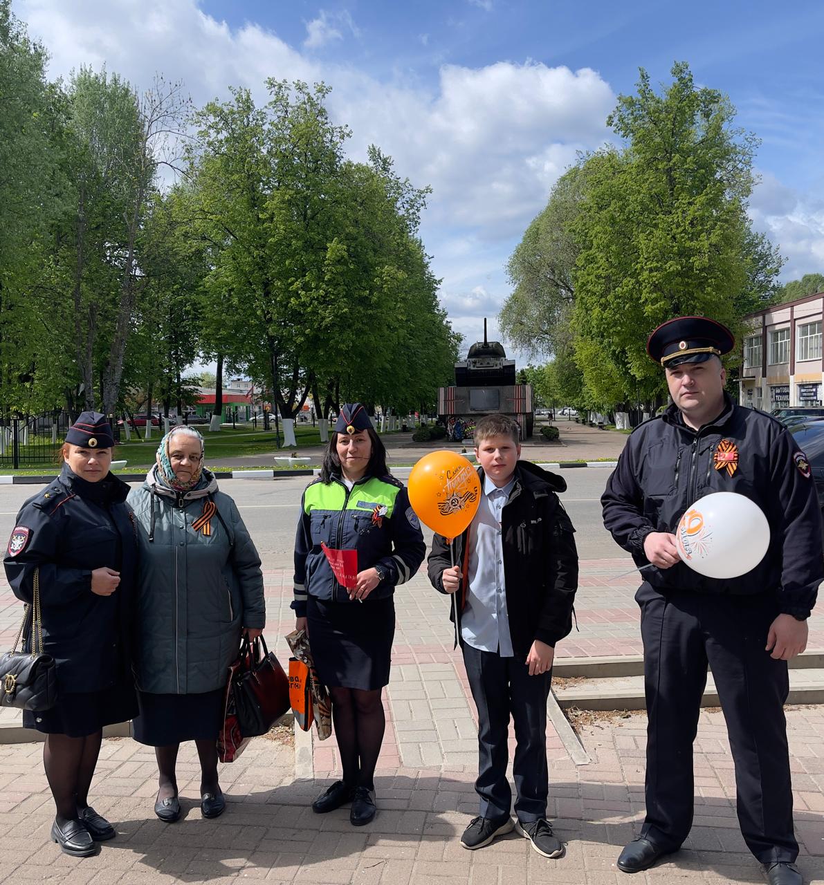 Стражи правопорядка вручали ленточки старшему поколению, которые принимали ее со слезами на глазах. Детям – дарили воздушные шары с логотипами Победы и флажки. Ребятам также рассказывали, что по внешнему виду и сочетанию цветов георгиевская лента соответствует Гвардейской ленте, которой обтянута орденская колодка к медали «За победу над Германией в Великой Отечественной войне». Это Гвардейская лента, как один из основных символов Дня Победы в России.