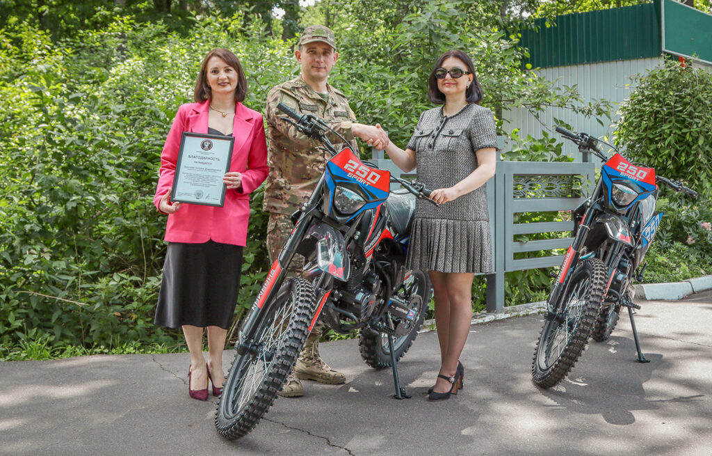 Сообщается, что пару кроссовых мотоциклов БАРСу передало руководство коммерческой организации «ЭкстраМед». Технику принял командир «БАРС-Брянск» Сергей Антошин и начальник штаба отряда Николай Голубокий.
