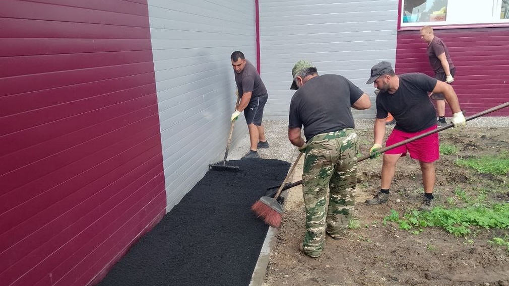 В помещениях рабочие уже завершают укладку линолеума, ведется отделка кабинетов на первом этаже. По периметру здания рабочие укладывают асфальт на отмостках. В ближайшее время на входной группе установят новые двери.