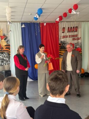 Хор школьников под руководством Янины Самохиной открыл мероприятие ярким исполнением песни «Дорога на Берлин». А ведущая встречи Елена Карачинская свой рассказ сопровождала трогательными видео военных лет. Проникновенно прозвучали песни «День Победы», «Красные маки» в исполнении Виктора Козичева. А учащиеся школы подготовили патриотический танец.